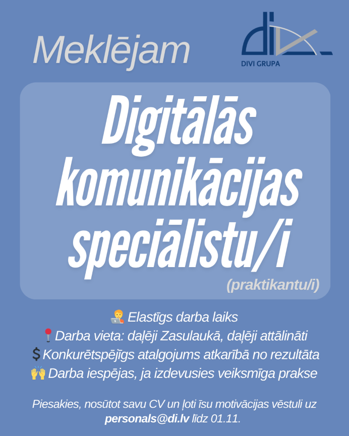 Meklējam DIGITĀLĀS KOMUNIKĀCIJAS SPECIĀLISTU/I (praktikantu/i)